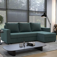Ecksofa mit Schlaffunktion Luigi VI türkis links stilvolles Ecksofa mit Bettzeugcontainer mit weichem Stoff bezogen