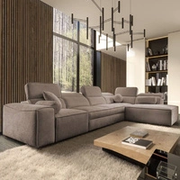 Ecksofa mit Schlaffunktion Viano XI hellbraun rechte Ecke trendig und stilvoll mit verstellbaren Kopfstützen Zierkissen