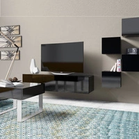 Malaga schwarz glänzend ergonomische und funktionale geometrisch inspirierte Schrankwand vergrößert optisch Ihr Interieur zum Aufhängen an der Wand