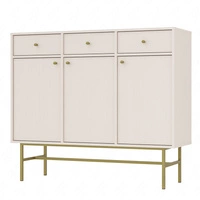 Kommode Luxury 160 cm beige elegantes Design Korpus mit goldenen trim Kommode auf schwarzen Metallbeinen unterstützt gekrönt