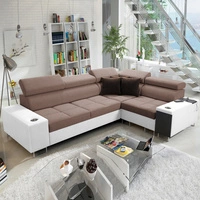Ecksofa mit Schlaffunktion Castel VII beige linke Seite stilvolles Ecksofa mit Bettzeugablage und verstellbaren Kopfstützen