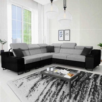 Ecksofa mit Schlaffunktion Alcamo III grau/schwarz links Funktions-Ecksofa mit einer Schublade in der Seite zwei Behälter für Bettzeug
