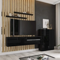 Schrankwand Almiros schwarz / schwarz glänzend modernes Design push to open Schubladensystem Schrankwand für Wohnzimmer mit Kommode