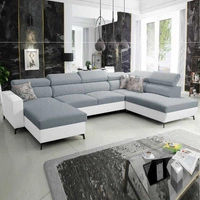 Ecksofa mit Schlaffunktion Savona blau / weiß links elegantes Ecksofa mit verstellbaren Kopfstützen Ziernähte