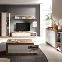 Spata Schrankwand weiß / weiß glänzend stilvolle grifflose Massivholzschrankwand modernistisch für Wohnzimmer oder Sitzungssaal