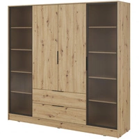 Kleiderschrank Corse 206 cm Eiche handwerklich modernes Design Kleiderschrank mit Glasfronten und geräumigen Schubladen ideal für Schlafzimmer und Büros