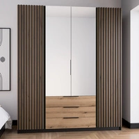 Kleiderschrank mit Spiegel Kastano XII 200 cm schwarz / Eiche evoke stilvolles Design Kleiderschrank Tür mit schwarzen Lamellen ideal für Schlafzimmer verziert