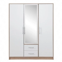 Kleiderschrank mit spiegel Caspe 150 cm Eiche hell sonoma / weiß modernes Design ABS-Finish und Aluminiumgriffe