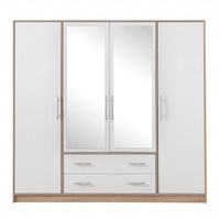 Kleiderschrank mit Spiegel Caspe 200 cm hell sonoma Eiche / weiß modernes Design ABS-Finish und Aluminiumgriffe