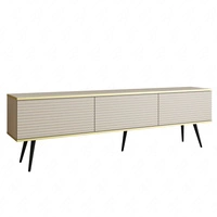 TV-Schrank Luxury 175 cm beige elegantes Design stilvolle geriffelte Front Korpus mit goldener Zierleiste schwarze Metallbeine gekrönt