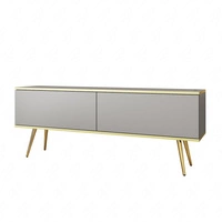 TV-Schrank Luxury 135 cm Korpus in grauem, elegantem Design mit goldener Zierleiste Schrank steht auf goldenen Metallbeinen