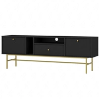 TV-Lowboard Luxury 175 cm Schwarz Begeistert Liebhaber eleganter Arrangements im modernen Stil Korpus verziert mit einer goldenen Leiste