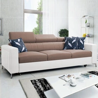 Sofa mit Schlaffunktion Savona hellbraun / weiß bequemes Sofa für Wohnzimmer bietet Komfort während der Ruhe verstellbare Kopfstützen