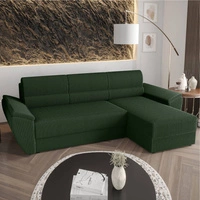 Ecksofa mit Schlaffunktion Fogu II grün rechtsseitig stilvolles Ecksofa mit bequemen Armlehnen und einem Bettkasten