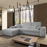 Ecksofa mit Schlaffunktion Tesalia II grau links bequemes Ecksofa für Wohnzimmer mit verschiebbarer Rückenlehne Bettzeugcontainer