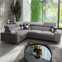 Ecksofa mit Schlaffunktion Fogu II grau Esche rechts stilvolles Ecksofa mit bequemen Armlehnen und einem Bettzeugbehälter
