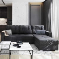 Nausa II Ecksofa mit Schlaffunktion aus graphitfarbenem Samt rechtes Ecksofa mit Ziernähten auf der Sitzfläche Ecksofa mit Koffer für Bettzeug
