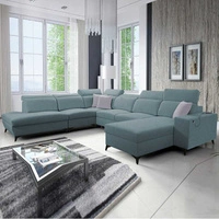 Ecksofa mit Schlaffunktion Kelly Sleek X arctic blue rechtes extrem elegantes Ecksofa für Wohnzimmer mit verstellbaren Kopfstützen