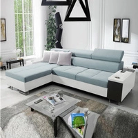 Ecksofa mit Schlaffunktion Dafni Arktisblau/Weiß linksseitig geflochten bietet Komfort und Funktionalität während der täglichen Erholung