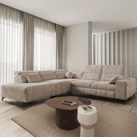 Ecksofa mit Schlaffunktion Luigi XII beige linke Seite stilvolles Ecksofa für Wohnzimmer in minimalistischer und eleganter Ausführung