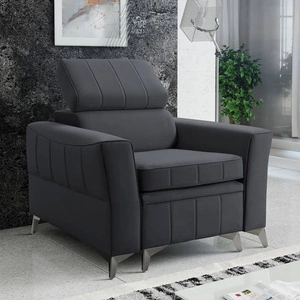 Rava Sessel graphit praktischer und bequemer Sessel für das Wohnzimmer mit verstellbarer Kopfstütze und weicher Samtstoffablage