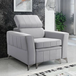 Rava Sessel grau Esche ein praktischer und bequemer Sessel für das Wohnzimmer mit verstellbarer Kopfstütze und einem Container weichen Samt Typ Stoff