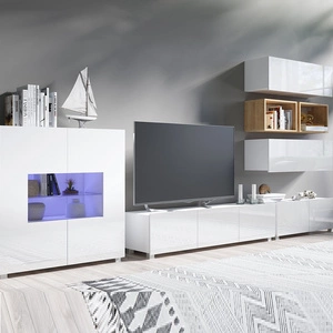 Apulia XVIII Schrankwand weiß glänzend Eine besonders stilvolle Schrankwand mit schlichten Möbelstücken, die sich in jede Einrichtung einfügt