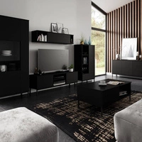 Metoni schwarz / schwarz glänzend universelle und stilvolle Schrankwand für das Wohnzimmer minimalistisches Design in einer modernen Umgebung