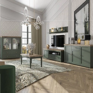 Wohnzimmermöbel Set Evora Flasche grün / Eiche lefkas wird die Liebhaber von markanten Interieurs mit seinem attraktiven Design und Funktionalität begeistern