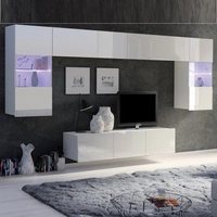 Metoni weiß / weiß glänzend universelle und stilvolle Wohnwand für das Wohnzimmer minimalistisches Design in einer modernen Umgebung