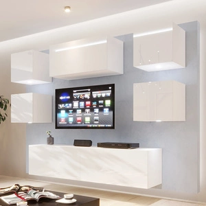 Sufli weiß / weiß glänzend Schrankwand extrem stilvolle Schrankwand für das Wohnzimmer optisch ansprechend und funktional
