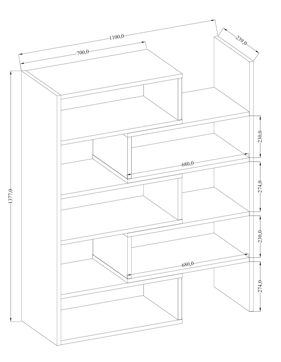 Regal wurde aus hochwertiger laminierter Karton 22 mm dick, die sich durch Widerstandsfähigkeit gegen äußere Einflüsse wie Druckstellen, Stöße und unglückliche Kratzer auszeichnet. Das Regal garantiert komfortable und problemlose Nutzung und Langlebigkeit des gesamten Möbelstücks für viele Jahre der Nutzung.