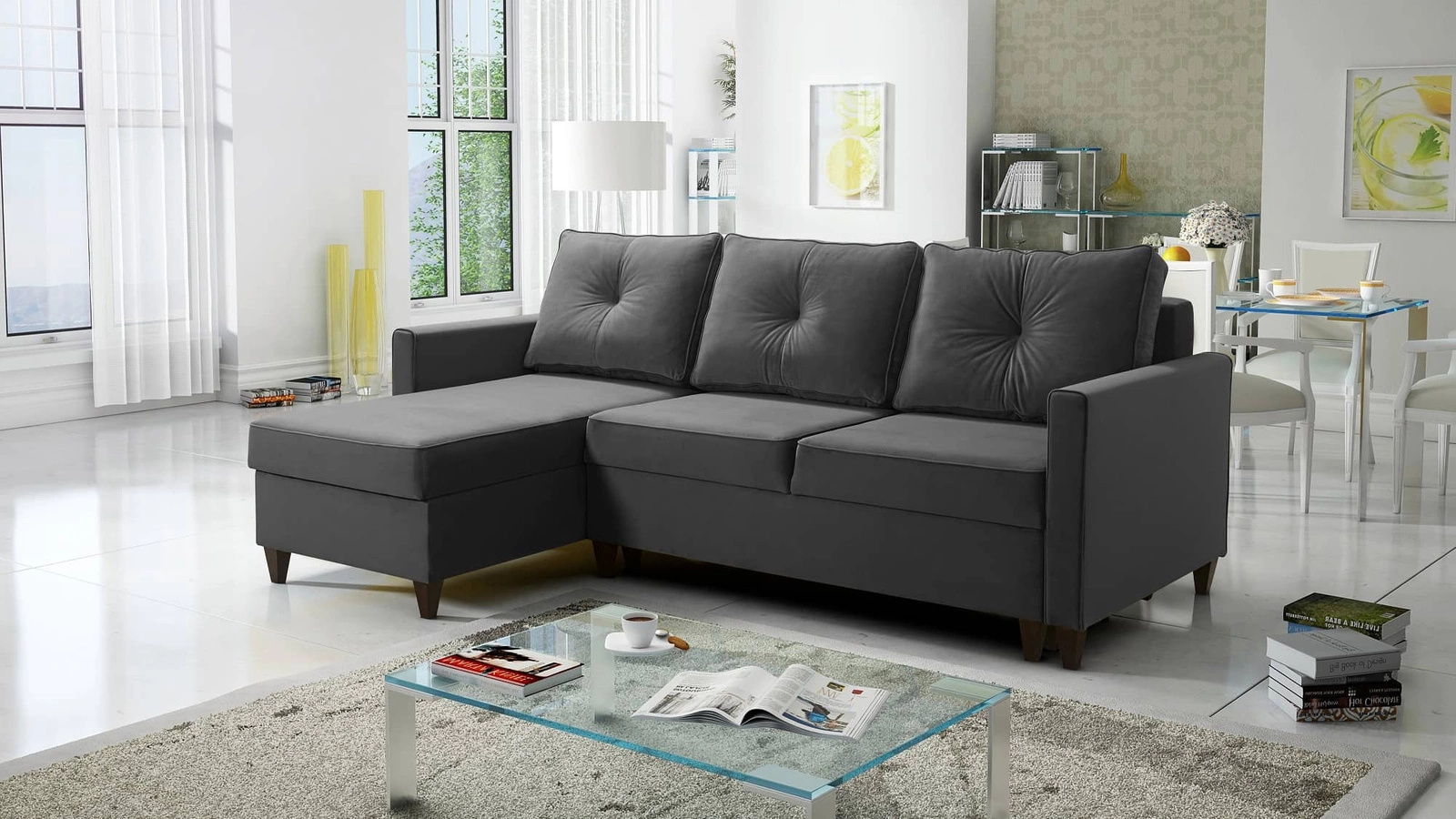 Ecksofa mit Schlaffunktion Terni graphit links Praktisches und funktionelles Ecksofa mit geräumigen Behältern für Bettzeug