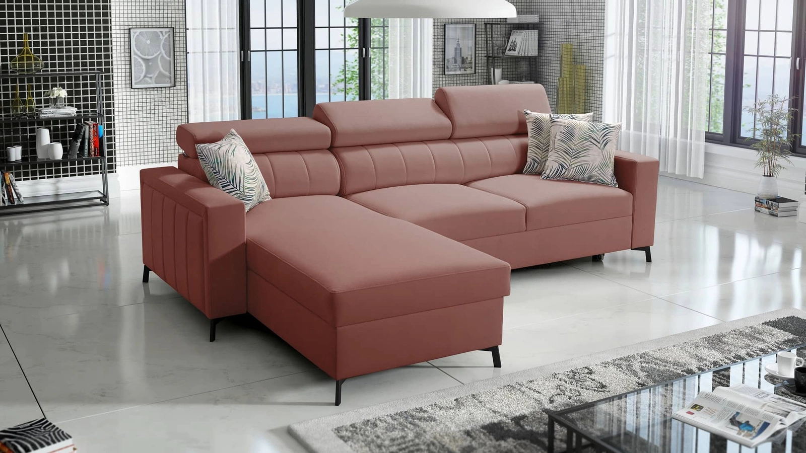 Ecksofa Savona in indischem Rosa mit verstellbaren Kopfstützen ist ein elegantes Möbelstück, das sich in jede Einrichtung einfügt.