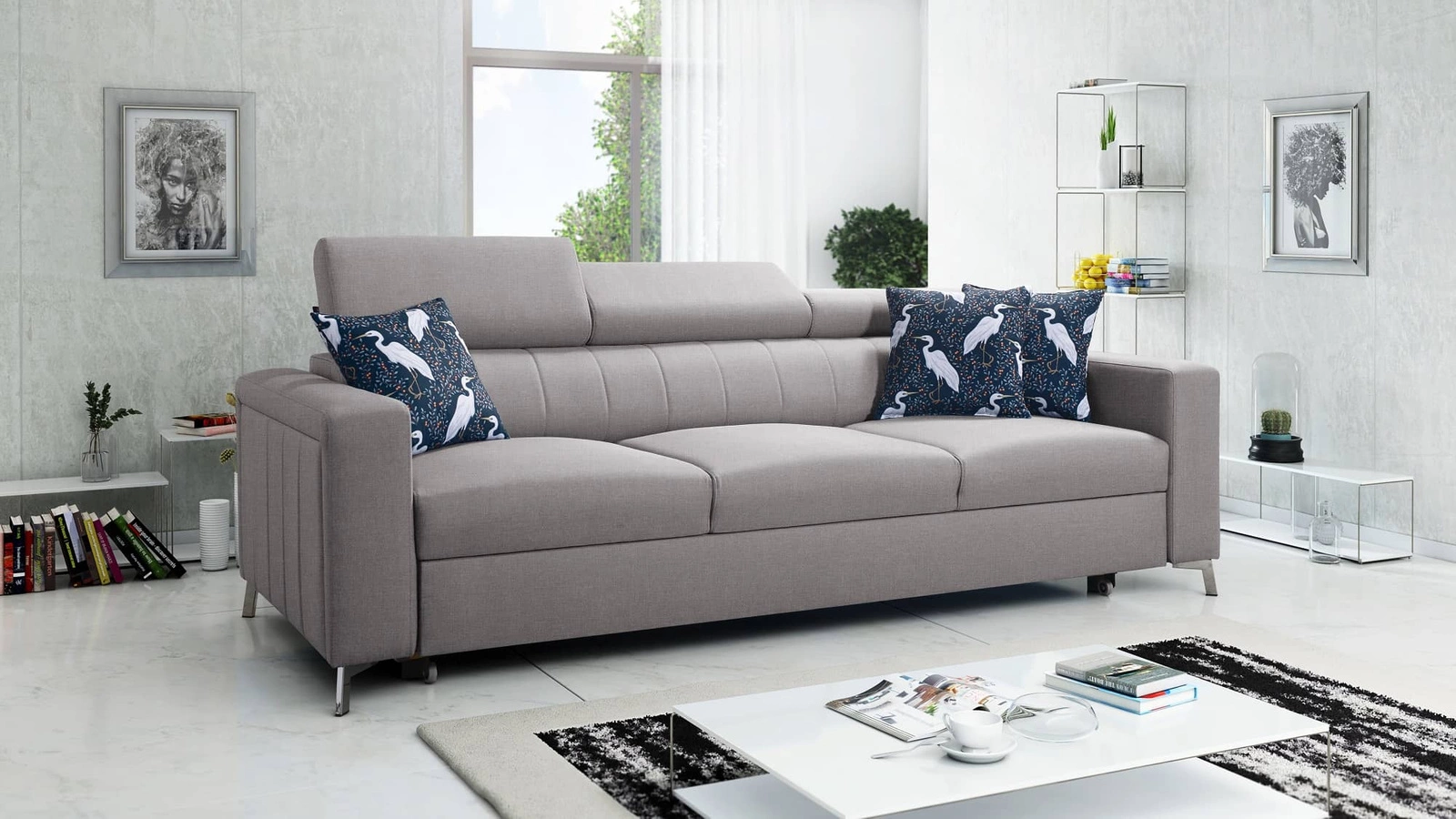 Sofa mit Schlaffunktion Savona hellgrau bequemes Sofa für Wohnzimmer bietet Komfort beim Ausruhen verstellbare Kopfstützen