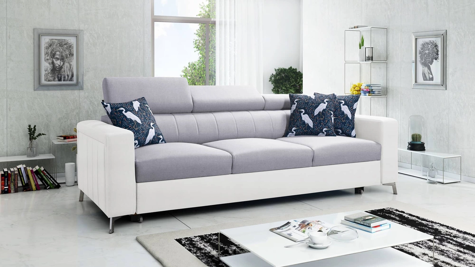 Sofa mit Schlaffunktion Savona grau Esche / weiß bequemes Sofa für Wohnzimmer bietet Komfort beim Ausruhen verstellbare Kopfstützen