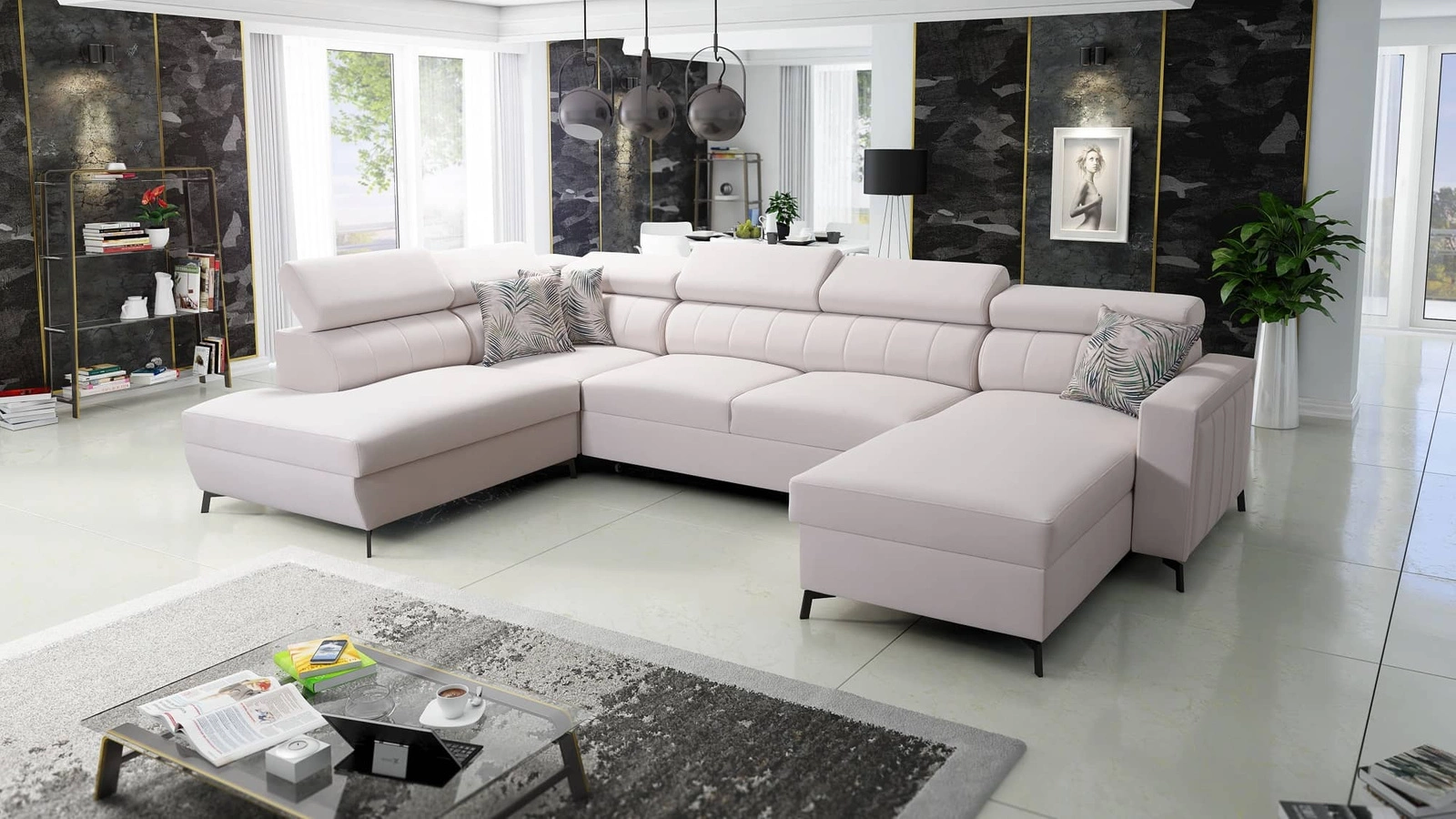 Gewellte Federn und T30-Polyurethanschaum ist das Material, aus dem der Sitz der Ecke hergestellt ist. Feste Rückenlehne mit verstellbaren Kopfstützen ermöglicht eine einfache anpassung sie können die Neigung der Kopfstützen nach Ihren Wünschen einstellen und so für eine bequeme Erholung nach einem langen Tag sorgen, die Sie, Ihre Lieben und auch Ihre Gäste, die auf diesem einzigartigen Ecksofa Platz nehmen, zu schätzen wissen werden!