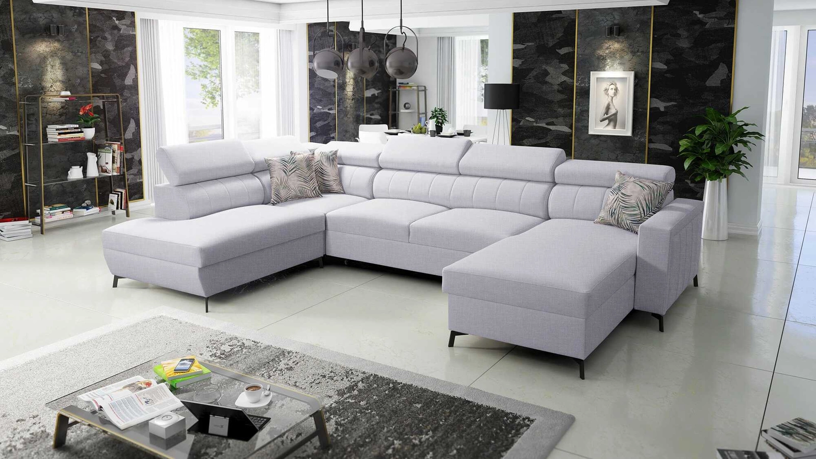 Gewellte Federn und T30-Polyurethanschaum ist das Material, aus dem der Sitz der Ecke hergestellt ist. Feste Rückenlehne mit verstellbaren Kopfstützen ermöglicht eine einfache anpassung sie können die Neigung der Kopfstützen nach Ihren Wünschen einstellen und so für eine bequeme Erholung nach einem langen Tag sorgen, die Sie, Ihre Lieben und auch Ihre Gäste, die auf diesem einzigartigen Ecksofa Platz nehmen, zu schätzen wissen werden!