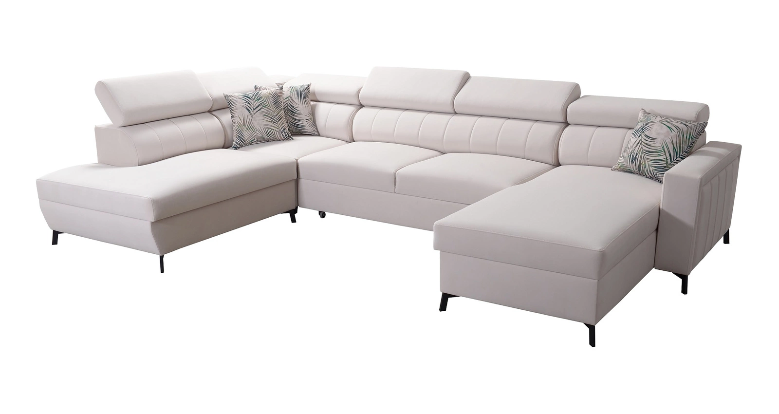 Gewellte Federn und T30-Polyurethanschaum ist das Material, aus dem der Sitz der Ecke gefertigt ist. Feste Rückenlehne mit verstellbaren Kopfstützen ermöglicht eine einfache anpassung sie können die Neigung der Kopfstützen nach Ihren Wünschen einstellen und so für eine bequeme Erholung nach einem langen Tag sorgen, die Sie, Ihre Lieben und auch Ihre Gäste, die auf diesem einzigartigen Ecksofa Platz nehmen, zu schätzen wissen werden!