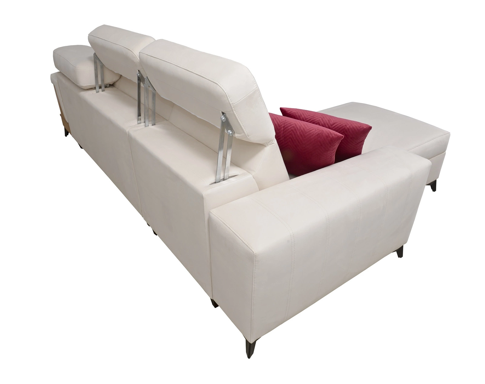 Gewellte Federn und T30-Polyurethanschaum ist das Material, aus dem der Sitz der Ecke hergestellt ist. Feste Rückenlehne mit verstellbaren Kopfstützen ermöglicht eine einfache anpassung sie können die Neigung der Kopfstützen nach Ihren Wünschen einstellen und so für eine bequeme Erholung nach einem langen Tag sorgen, die Sie, Ihre Lieben und auch Ihre Gäste, die auf diesem einzigartigen Ecksofa Platz nehmen, zu schätzen wissen werden!