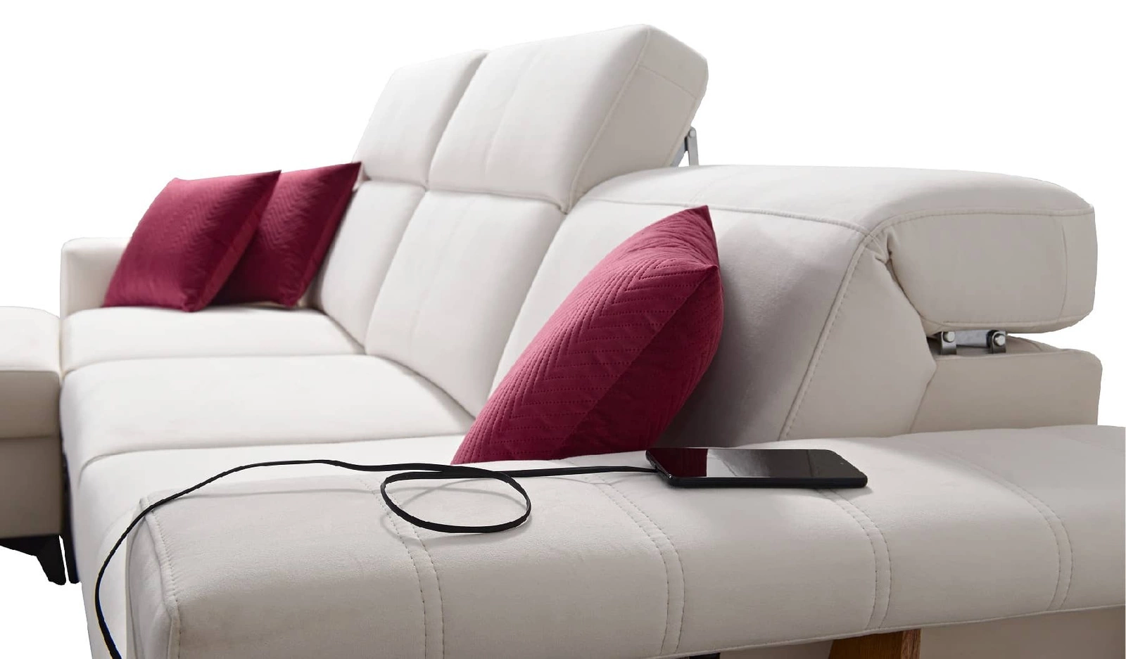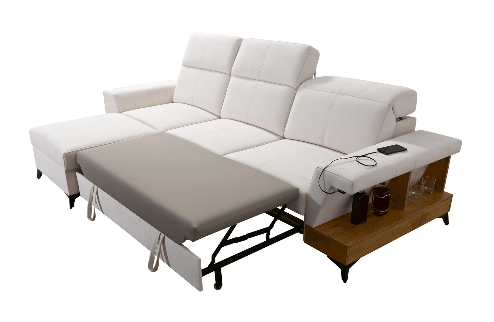 Die Extras dieses Möbelstücks, die alle Nutzer schätzen werden, sind der Bettzeugbehälter, die Schlaffunktion und zwei USB-Ladebuchsen.