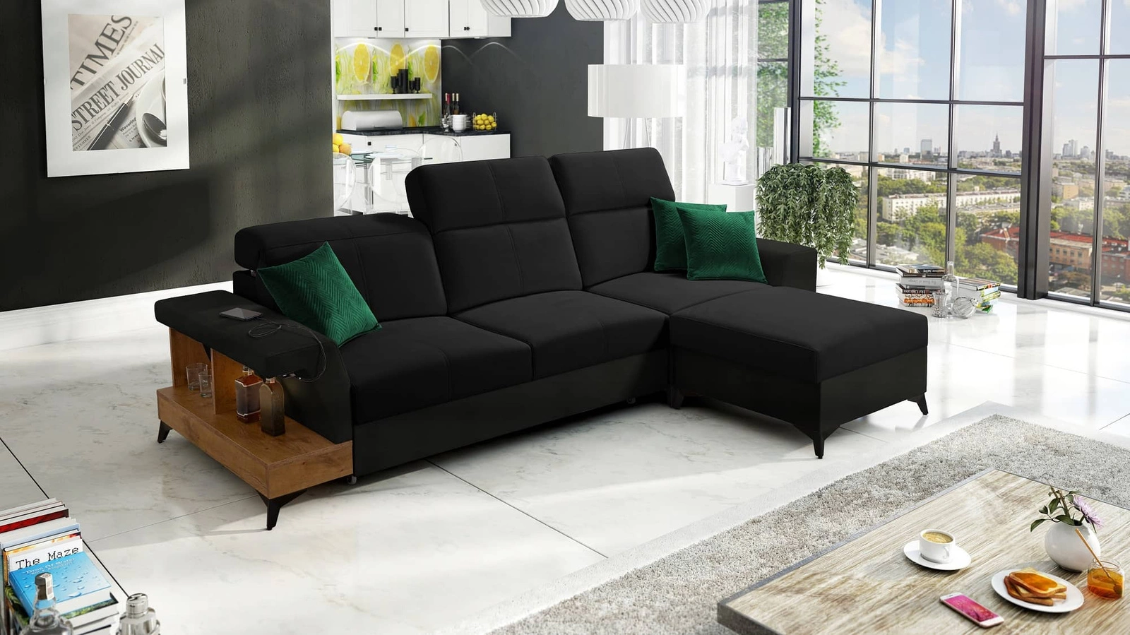 Narożnik z funkcją spania Bresso Narożnik do salonu z barkiem Narożnik rozkładany
