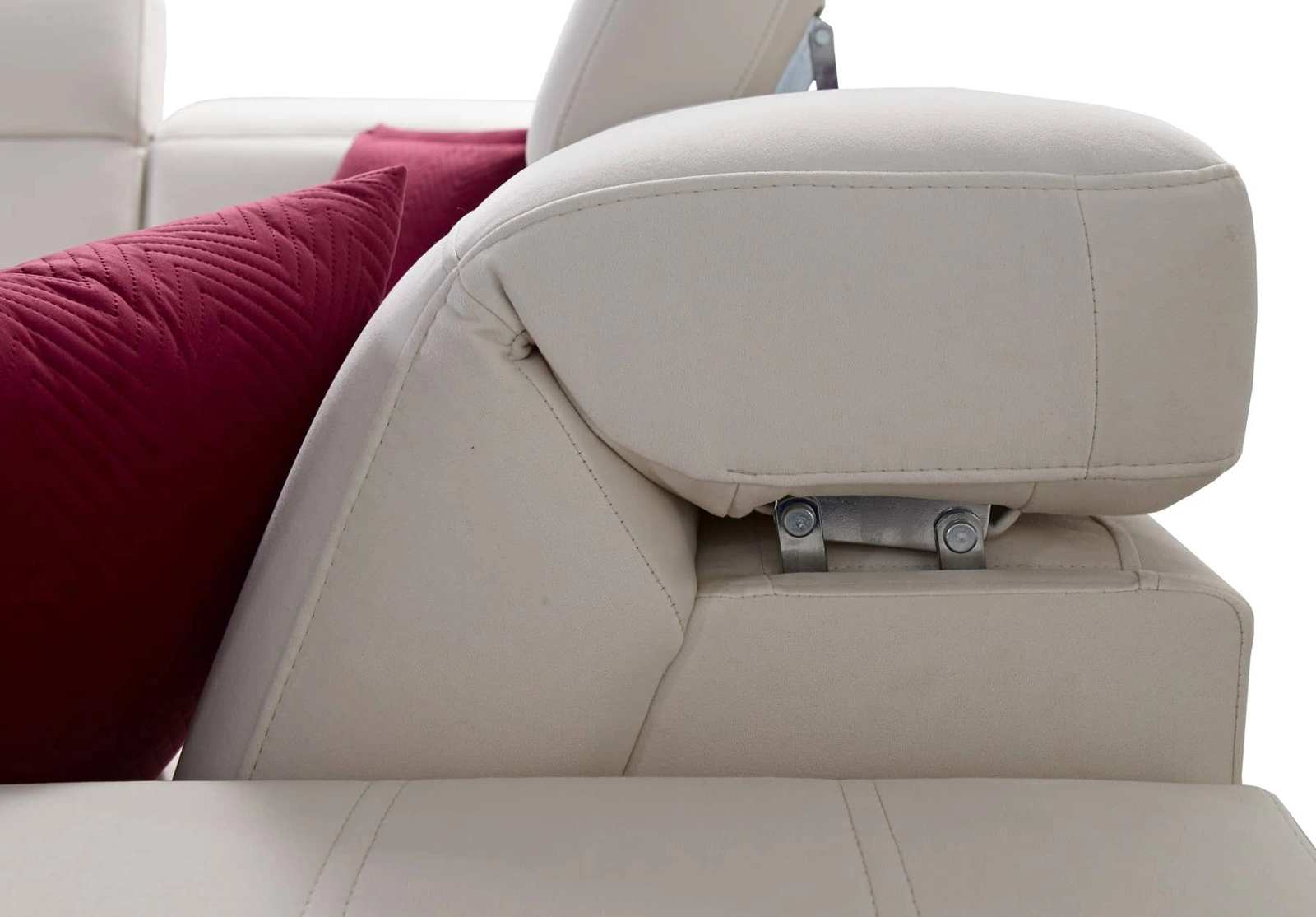 Gewellte Federn und T30-Polyurethanschaum ist das Material, aus dem der Sitz der Ecke hergestellt ist. Feste Rückenlehne mit verstellbaren Kopfstützen ermöglicht eine einfache anpassung sie können die Neigung der Kopfstützen nach Ihren Wünschen einstellen und so für eine bequeme Erholung nach einem langen Tag sorgen, die Sie, Ihre Lieben und auch Ihre Gäste, die auf diesem einzigartigen Ecksofa Platz nehmen, zu schätzen wissen werden!