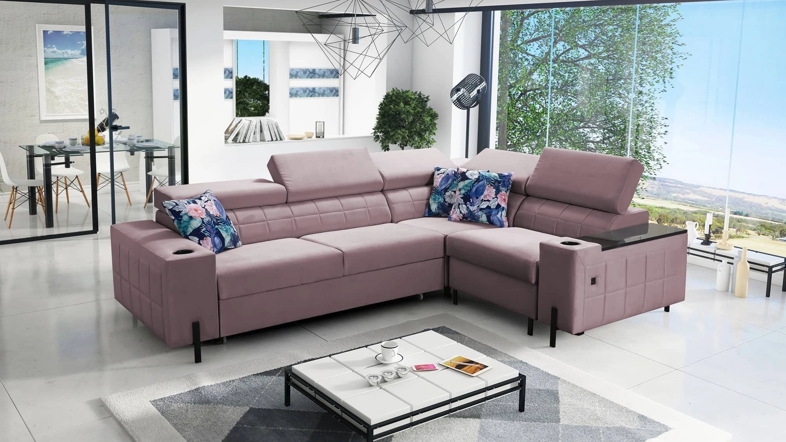 Gewellte Federn und T30-Polyurethanschaum ist das Material, aus dem der Sitz der Ecke hergestellt ist. Feste Rückenlehne mit verstellbaren Kopfstützen ermöglicht eine einfache anpassung sie können die Neigung der Kopfstützen nach Ihren Wünschen einstellen und so für eine bequeme Erholung nach einem langen Tag sorgen, die Sie, Ihre Lieben und auch Ihre Gäste, die auf diesem einzigartigen Ecksofa Platz nehmen, zu schätzen wissen werden!