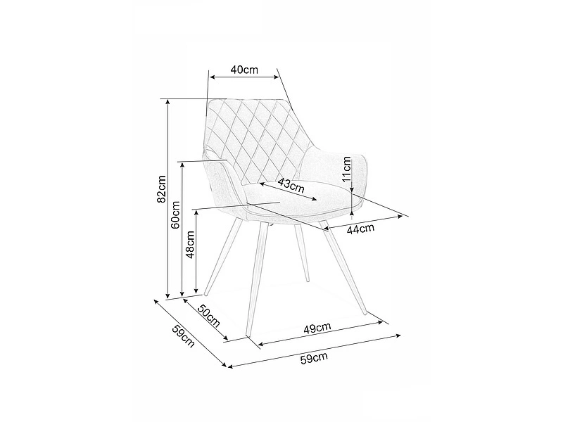 Für zusätzlichen Komfort hat der Stuhl eine bequeme 34 cm hohe Rückenlehne und weiche Armlehnen, die einen bequemen Sitzkomfort gewährleisten. Dezente Nähte an der Rückenlehne unterstreichen die Eleganz des Stuhls. Weiche Armlehnen verleihen dem Gesamtbild eine einzigartige Note.