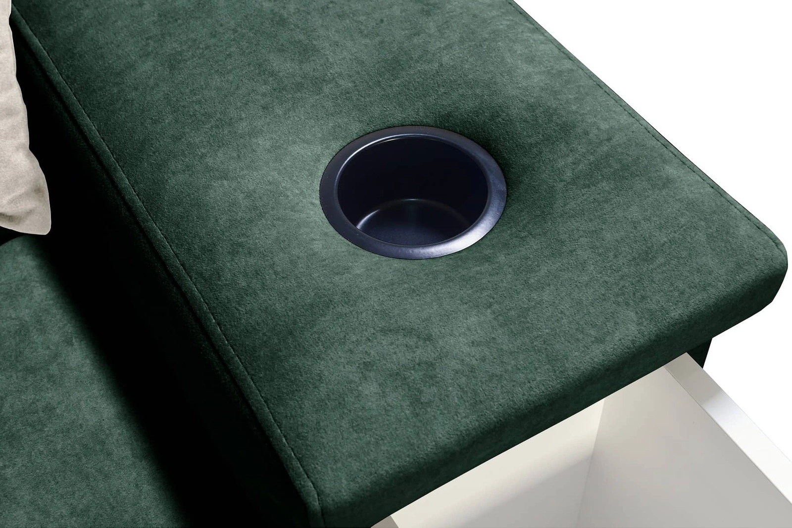 Eine Multifunktionsleuchte mit flexiblem Arm und USB-Ladebuchse, eine Schublade mit Vollauszug an der Seite des Möbels und Getränkehalter sind Ergänzungen dieses Möbels, die alle Nutzer schätzen werden.
