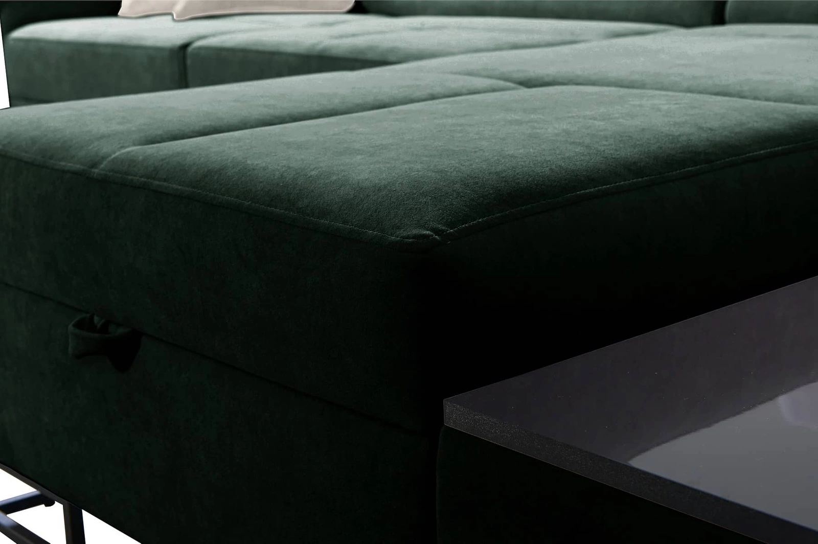 Die Art und Weise, wie der Eckschrank aufgeklappt wird, ist praktisch und einfach zu bedienen delphin-Automatik, das sich durch eine lange Lebensdauer auszeichnet. Die gesamte Liegefläche lässt sich mit einem Handgriff ausklappen. Die Möbel sind ausgestattet mit schwarz, metallbeine. Die Rückseite der Möbel wurde zusätzlich mit Holzbeinen verstärkt. Eckeinheit ggewährleistung eines komfortablen und störungsfreien Gebrauchs und einer langjährigen Haltbarkeit des gesamten Möbelstücks. Das Ecksofa mit Schlaffunktion eignet sich dank seiner optimalen Abmessungen und seiner breiten Funktionalität ideal als Ecksofa für das Wohnzimmer oder als klappbares Ecksofa für das Gästezimmer. Die Wohnzimmer-Ecksofas der Kollektion Alcamo passen perfekt in jede Einrichtung in Ihrem Lieblingsstil!