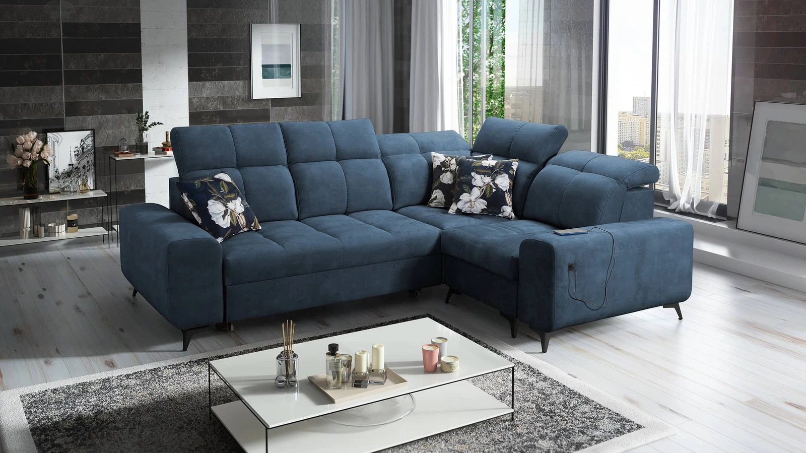 Ecksofa mit Schlaffunktion Buffalo II blau rechts funktionelles und stilvolles Ecksofa mit verstellbaren Kopfstützen