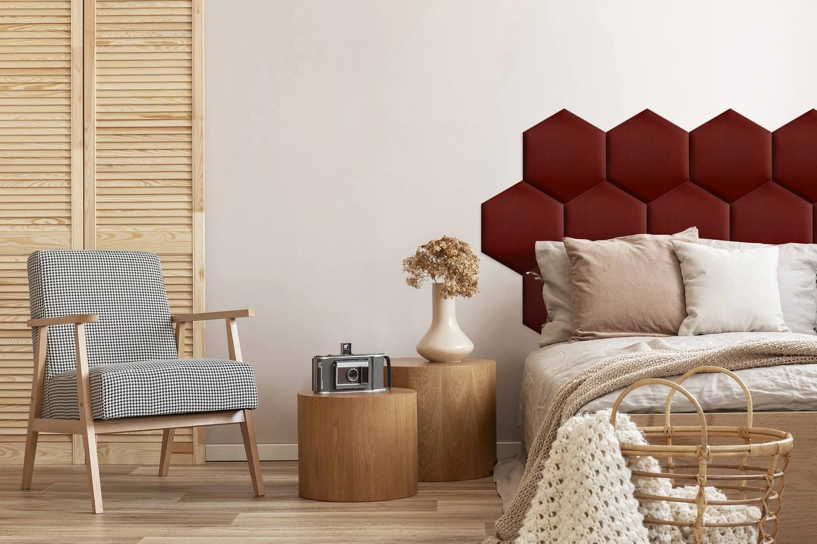 Gepolstertes Paneel Heksagon in Burgunderrot ist eine Dekoration, die Liebhaber moderner Arrangements begeistern wird.