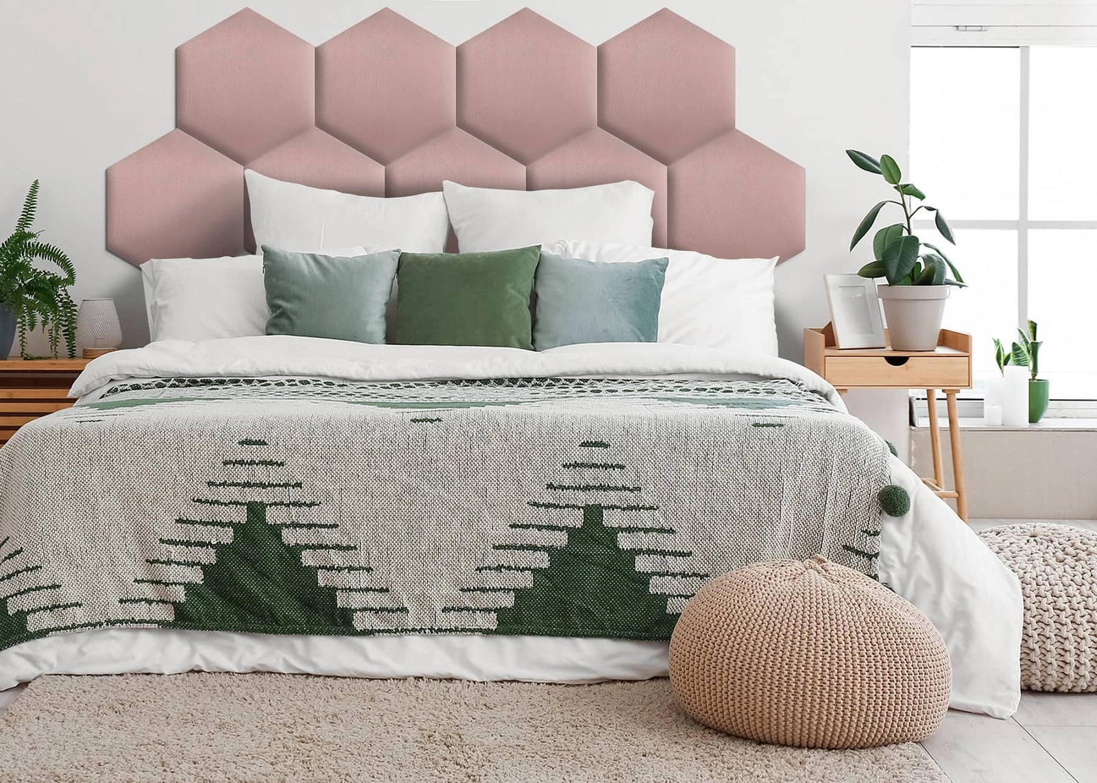 Gepolstertes Paneel Heksagon in Rosa ist eine Dekoration, die Liebhabern von modernen Arrangements gefallen wird.